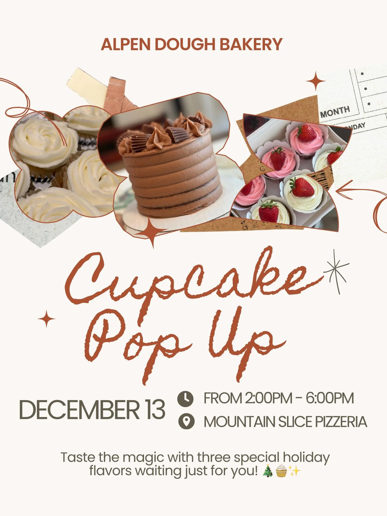 Today, Saturday the 13th, we have the owner of alpen Dough Bakery doing a cupcake pop up from 2pm until they are gone! Eat a cupcake at the shop or take some home with your pizza! Ask us about the cupcake flavors! Don’t sleep on these cupcakes, get them before they sell out!!